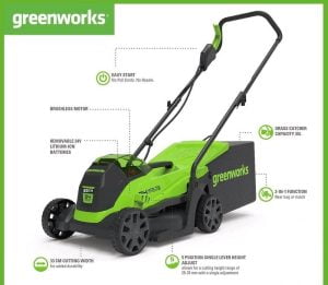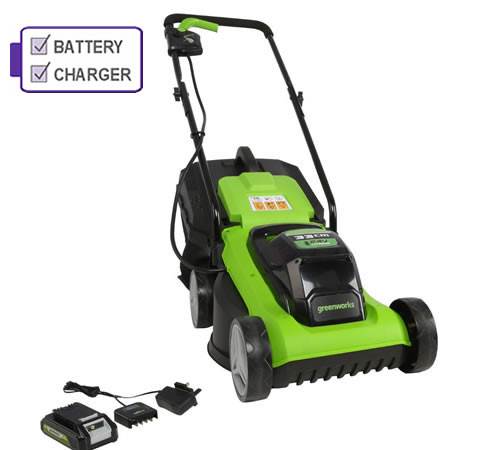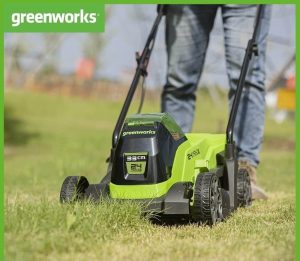 The Greenworks G24LM33 is a robust. lightweight 24V lawnmower perfectly designed for small gardens thanks to a 33cm cutting width and compact design. Power comes from technologically advanced 24V battery. which is compatible with all the other 24V tools. Greenworks’ GD24LM33 makes mowing easier and more enjoyable by eliminating the need for cables and petrol. Mower has an integrated handle and lightweight design which allows easy transporting and manoeuvring around the garden.