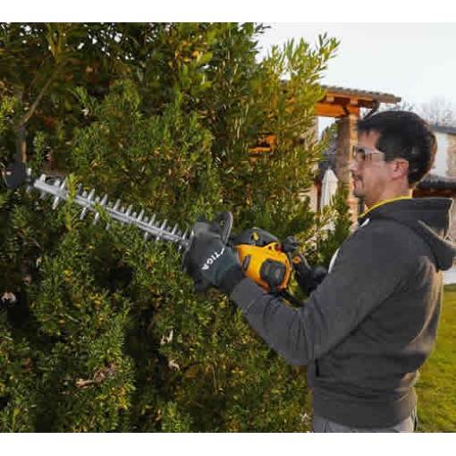 A step up from the basic models with features designed for tougher jobsand longer working times. The multi-point anti-vibration system reduces thevibrations felt in the hands and arms for added comfort over longer periods.The handle rotates through 3 positions. allowing for easy and speedy switching fromhorizontal. vertical. and lateral trimming. With a 27mm cutting capacity fortrimming thicker branches. Maintenance is made easy with tool-free access tothe air filter. The blade protector removes easily for sharpening.