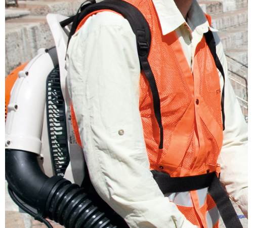The backpack design with wide shoulder straps. hip belt and anti vibration technology make this blower comfortable to use. The anti vibration system dampens the amount of vibrations felt from the engine by the user and reduces fatigue and the effects felt in the hands and arms from continuous use.